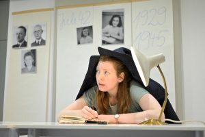Am 31.01. und am 06.02. nahmen die Klassen 9b und 9c an einem Projekttag zur Theatervorstellung „Anne Frank und ihr Tagebuch“ im Markgrafentheater in Erlangen teil. Dazu erlebten die Schülerinnen und Schüler einen ganzen Vormittag Theater pur! Zunächst kamen sie in einem Theater-Workshop selbst ins Spiel, wurden kreativ und machten sich mit den Inhalten des Stückes bekannt. Danach sahen sie sich die Vorstellung „Anne Franke und ihr Tagebuch“ an, welche sehr eindrucksvoll von einer Schauspielerin dargeboten wurde.