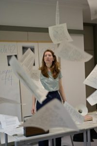 Im Anschluss konnten die Schülerinnen und Schüler im Gespräch mit der Schauspielerin persönliche Einblicke in das Theaterhandwerk gewinnen. Außerdem durften sie am Ende des Vormittages noch einen Blick „hinter die Kulissen“ des Markgrafentheaters werfen und dabei selbst auf der großen Bühne stehen, wo gerade die Kulissen für die Abendvorstellung aufgebaut wurden. Insgesamt war es ein sehr gelungener Ausflug für alle Beteiligten!