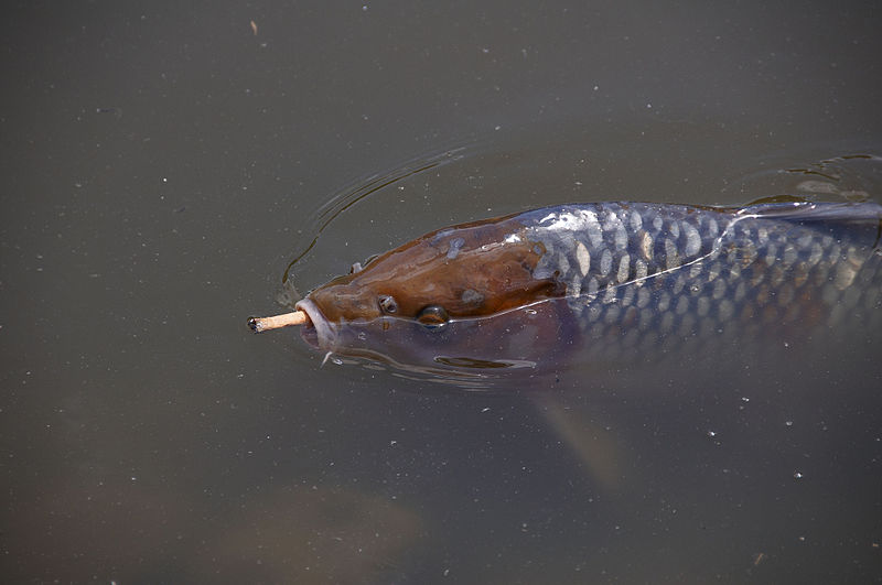 In einer Zigarette sind viele Giftstoffe, wie Blei, Chrom oder Arsen enthalten, die für Fische und andere Lebewesen tödlich sein können. Fische sehen diese aber als Nahrungsquelle und nehmen diese auf und können deswegen sterben. Eine Studie der National Library of Medicine stellte fest, dass eine Zigarette aufgelöst in einem Liter Wasser alle dort enthaltene Fische umbringt. Zusätzlich dauert es 15 Jahre, bis eine Zigarette vollständig abgebaut ist, wobei es im Salzwasser noch länger ist.